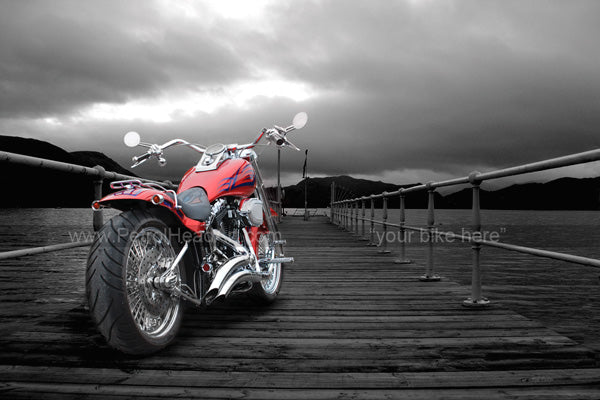 A road trip followed to Scotland for a suitable jetty, ending in the Lake District where I found this one where the hard work began and thanks to Hazel, my first commission with this fab red Harley. Since then, as well as the UK, road trips along Route 66, Venice and other fabulous European locations photographing suitable backdrops, moments in time and places you just can't take your vehicle to, let alone in the right weather and without people.