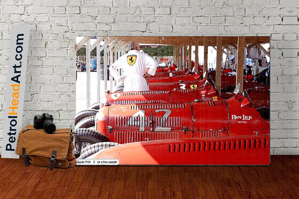 This particular past line up at Goodwood Revival will probably never be recreated but this piece of Alfa Romeo P3 Art can grace any home or office wall but does look fab in one of my slight paint effects.