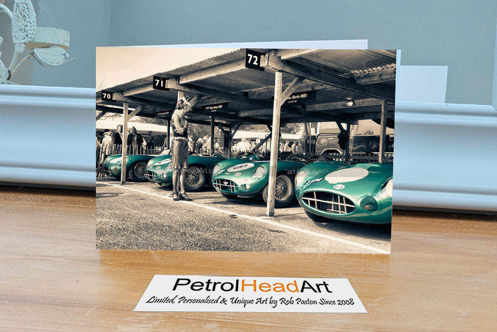 This Aston Martin DBR1 Art Greetings Card is a high quality image card with envelope from my personal gallery of art over the years, great for birthdays or for sending event tickets these cards are left blank for your special message.