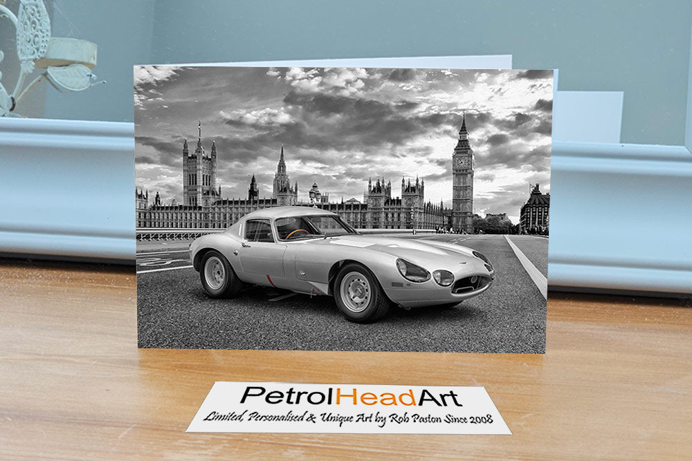 This Jaguar Low Art Big Ben Greetings Card is a high quality image card with envelope from my personal gallery of art over the years, great for birthdays or for sending event tickets these cards are left blank for your special message.