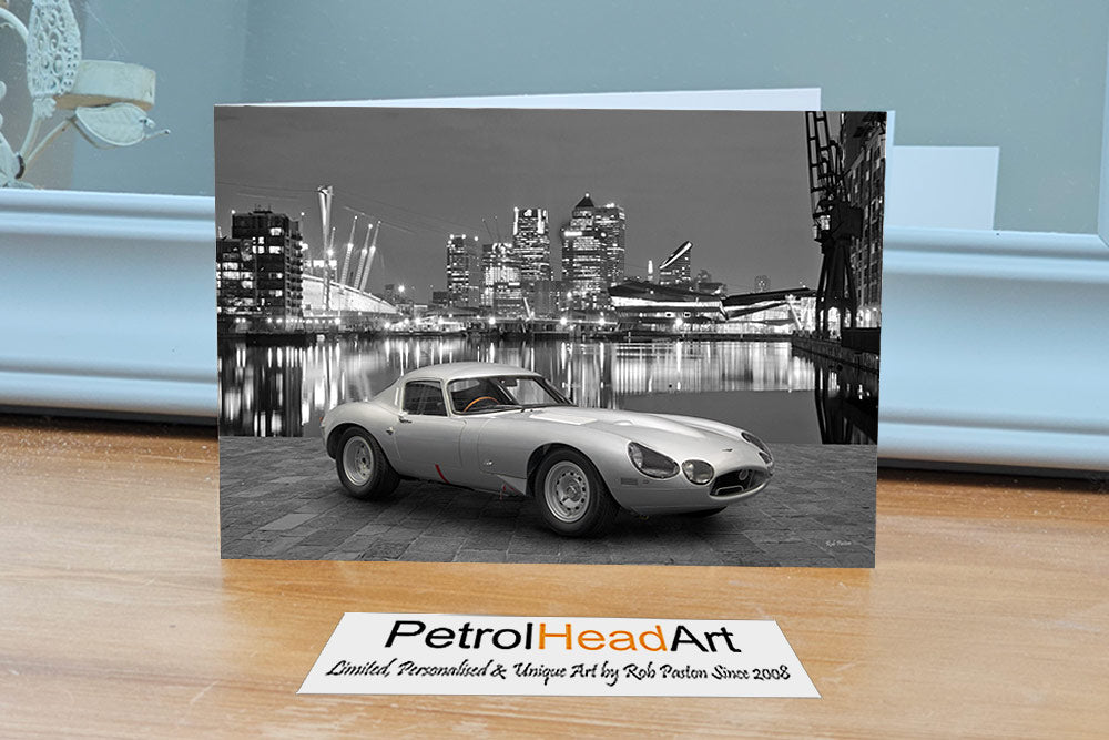 This Jaguar E type Low Art Greetings Card is a high quality image card with envelope from my personal gallery of art over the years, great for birthdays or for sending event tickets these cards are left blank for your special message.