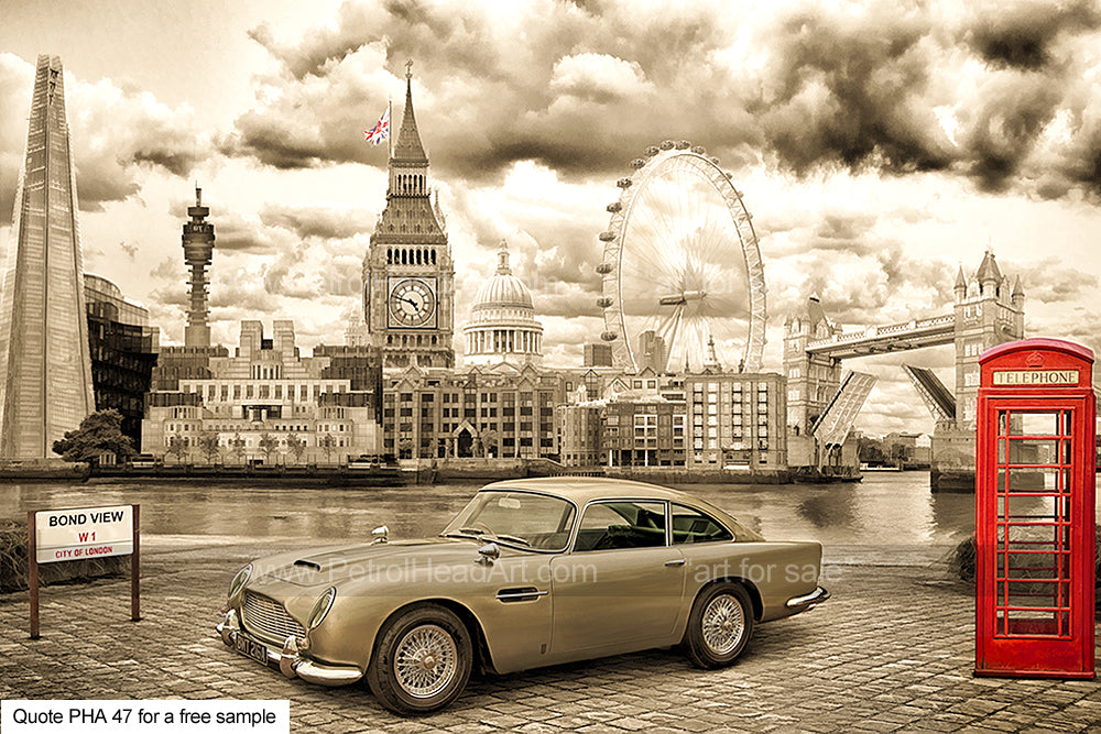This James Bond DB5 Art Greetings Card is a high quality image card with envelope from my personal gallery of art over the years, great for birthdays or for sending event tickets these cards are left blank for your special message.