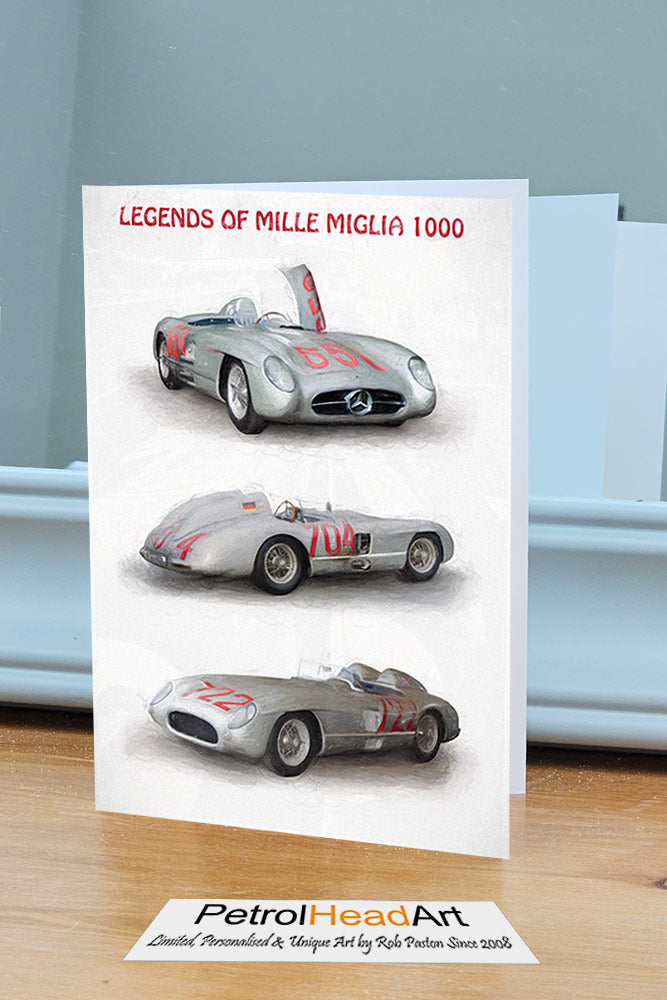 This Mercedes Mille Miglia Art Greetings Card is a high quality image card with envelope from my personal gallery of art over the years, great for birthdays or for sending event tickets these cards are left blank for your special message.