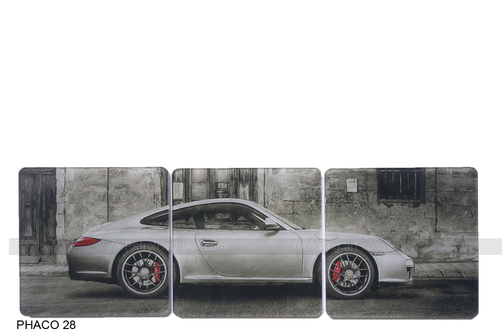 These black and white high gloss Porsche Art Coasters look really stylish here in this rustic background acting as a great piece of table art whilst protecting your table from a well earnt drink, especially being a whopping 10.5 cm