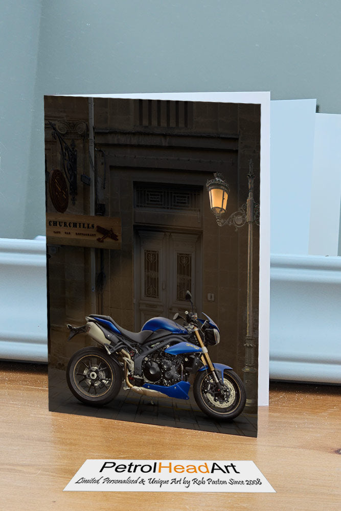 This Triumph Speed Triple Art Greetings Card is a high quality image card with envelope from my personal gallery of art over the years, great for birthdays or for sending event tickets these cards are left blank for your special message.